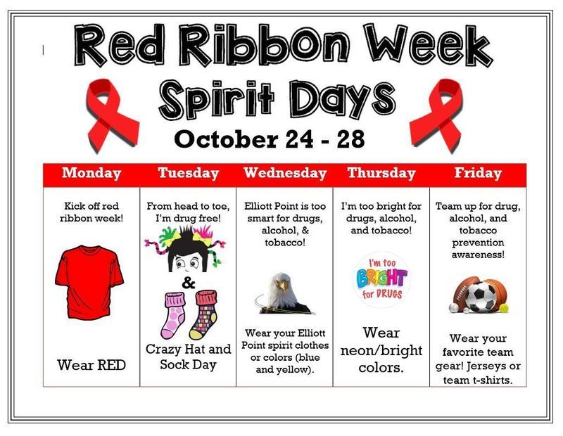 Wednesday - Elliott Point is too smart for drugs, alcohol, and tobacco! Wear your Elliott Point spirit clothes or colors (blue and yellow).